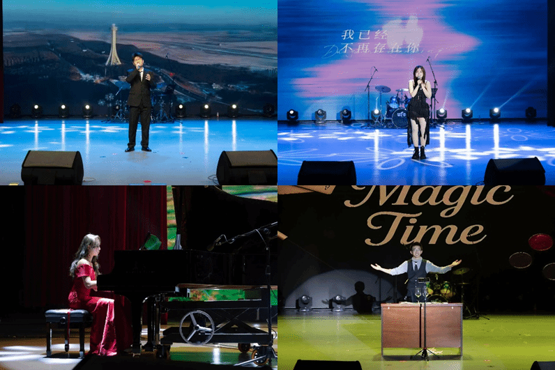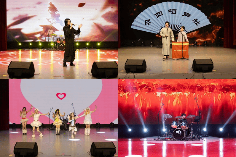 燃爆全场的演出随即开始。草地音乐社的《What makes you beautiful》打开全场的“氛围开关”;舞蹈《What is love》的节拍点燃全场激情;介四相声社的《你好,大学》成了“全场笑点制造机”——早八的课与赖床的我,让师生笑作一团,又不乏启迪心灵;魔术《纸牌奇迹》的指尖戏法,让全场屏住呼吸,目光聚焦于聚光灯下变幻莫测的纸牌;架子鼓与萨克斯的合奏,让师生沉浸在乐器与灵魂的共鸣,每一个鼓点,每一个音符都在空气中跳跃,将现场氛围推向高潮;一曲钢琴独奏,高雅不失风度,真情随手指跳动而流出,陶醉了多少师生;慷慨激昂的朗诵,也成功拉动听众们的情绪,师生们仿佛切实迈入了那个伤感动人的故事之中。紧张又激动的抽奖互动更是将晚会热烈氛围一次又一次推向高潮。