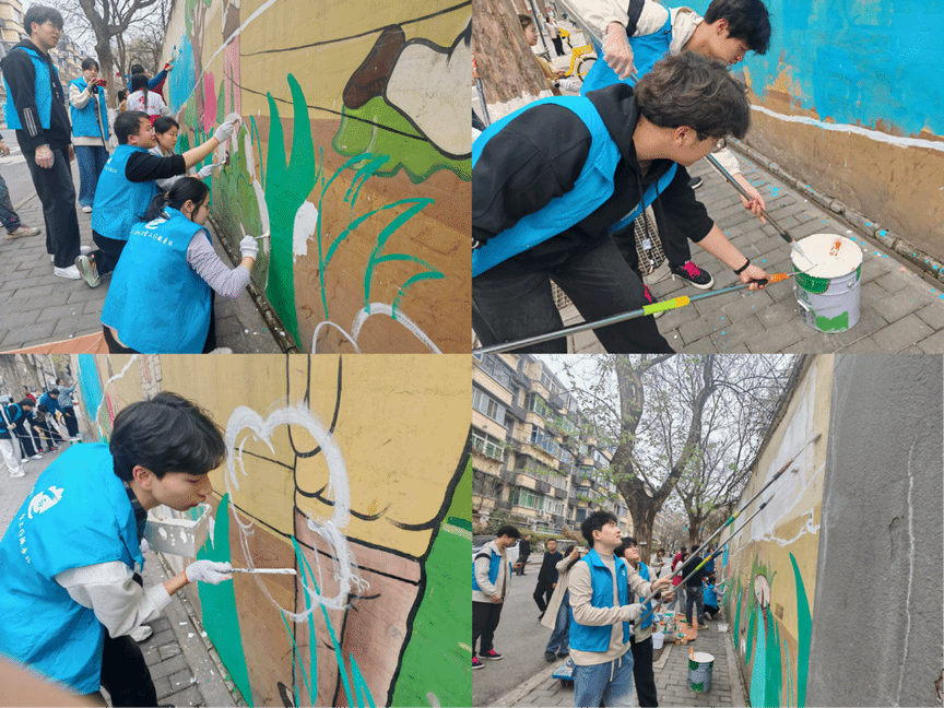 团委组织2个团支部的10名本科生前往新城区通济坊小学附近街道,开展“画笔绘温情,青春暖社区”主题墙绘志愿服务活动。同学们以画笔为媒,用色彩点亮城市角落,在服务社会中展现新时代大学生的青春风采与责任担当。