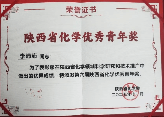 青年教师李沛沛获评第六届“陕西省化学优秀青年奖”。